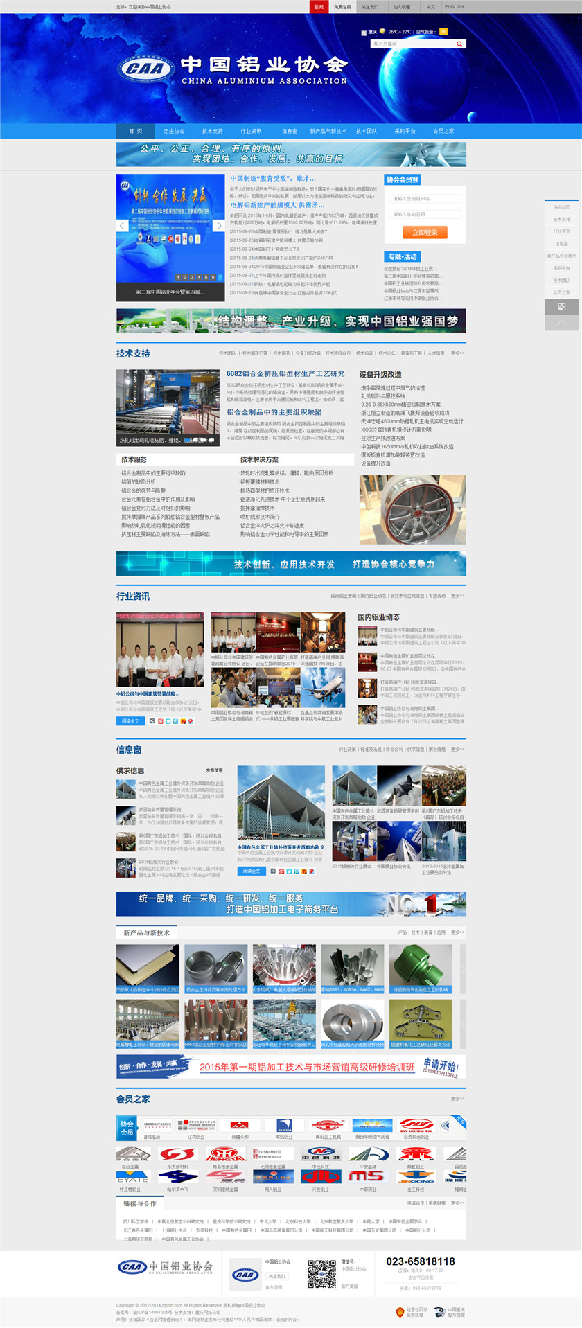 Project Description 中国铝业协会是由中国国内主要从事铝合金铸造、板、带、箔、管、棒、型材、锻件等企业组成的行业协会组织,协会由国内具有一定规模和影响力的企业发起,已有三百多家会员企业,目前还有很多企业踊跃希望加入,协会现有会员企业年销售额1000多亿元人民币,协会会员企业分布在国内华东、华南、西南、环渤海、东北、胶东半岛等中国经济活跃地区;产品涵盖航空航天、兵器装... Official website address 抚顺http://www.caa2014.com I want to share