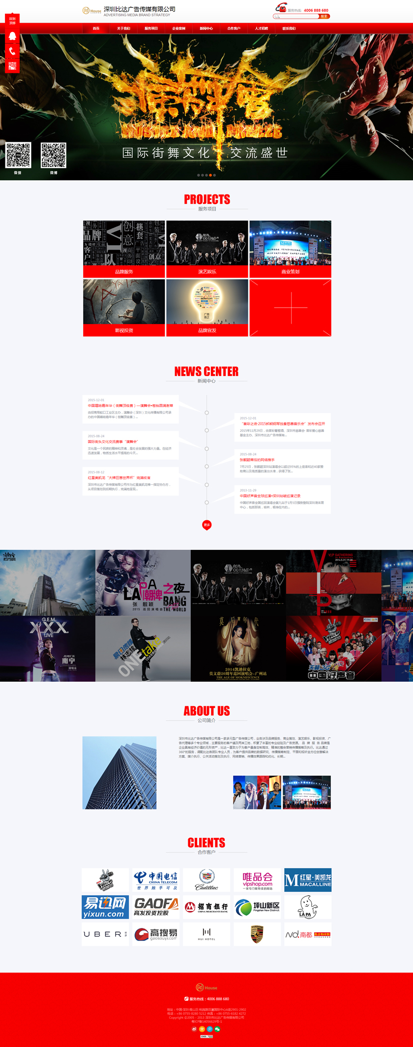 Project Description 深圳市比达广告传媒有限公司是一家多元型广告传媒公司,业务涉及品牌服务、商业策划、演艺娱乐、影视投资、广告代理等多个专业领域,主要服务的客户遍及两岸三地,积累了丰富的专业经验及广告资源。 Official website address 抚顺http://www.pdhouse.com I want to share
